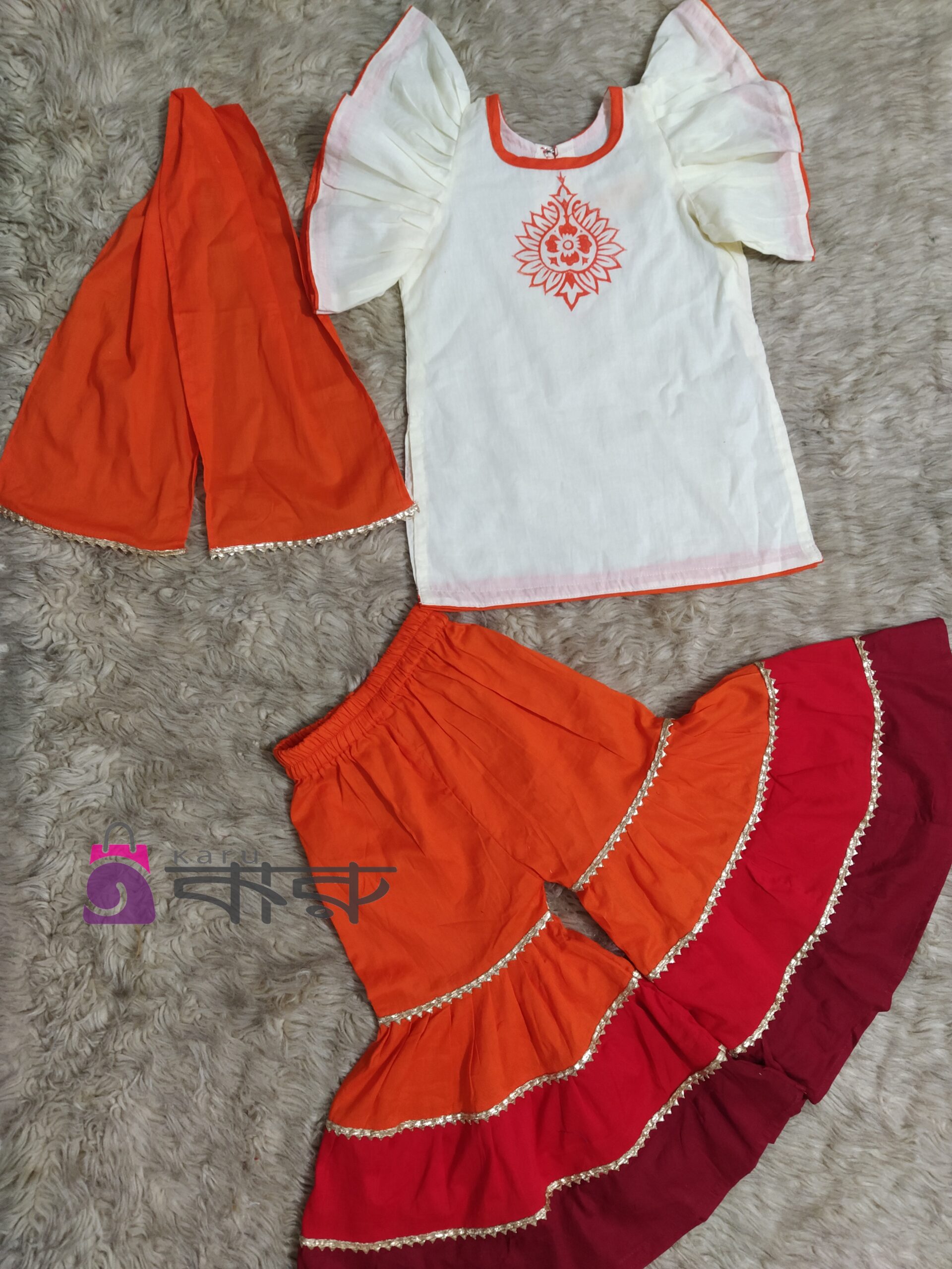 White & Orange Baby Three Piece Code: KTP-023
