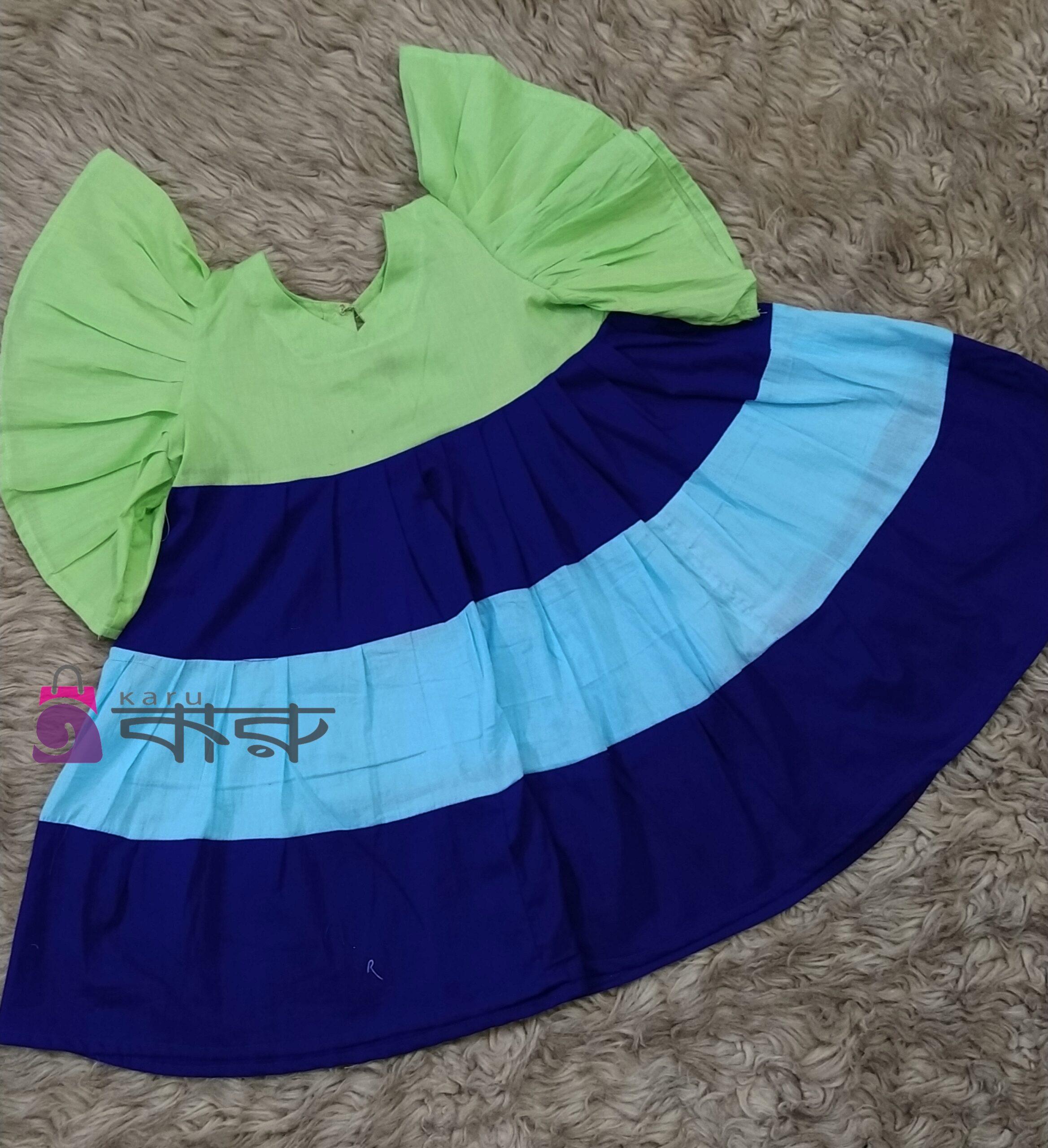 Lime, Navy Blue & Sky Blue Baby Frock Code: Kbf-008