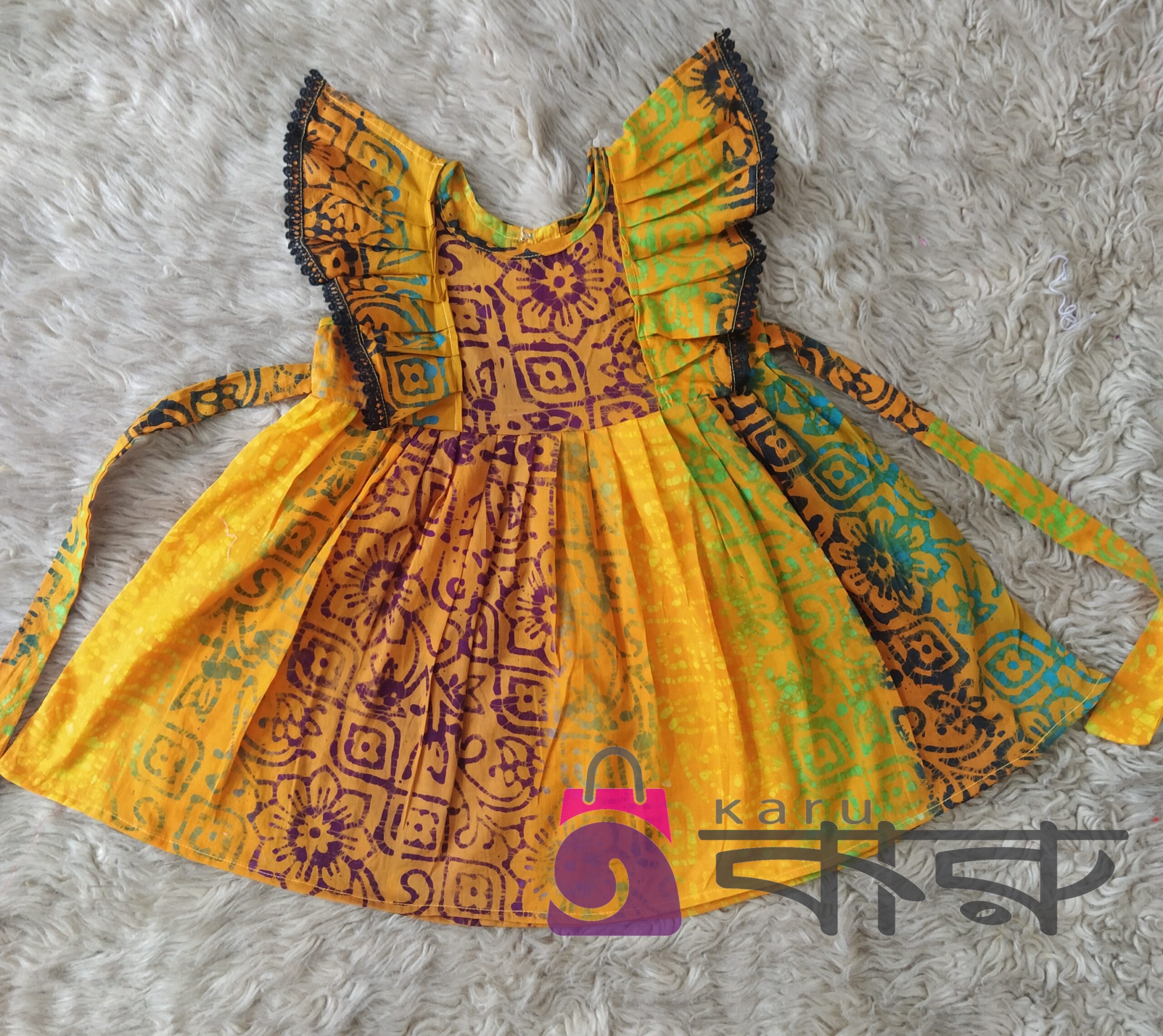 Yellow Printed Baby Frock Code: Kbf-006